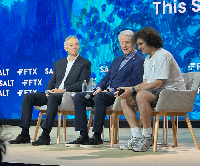 FTX CEO Sam Blankmen-Fried sits on stage with Bill Clinton and Tony Blair(NY Post / Twitter)