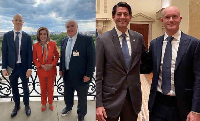 Coinbase CEO Brian Armstrong poses with government officials.(Brian Armstrong / Previous SA article: Will Developers Burn Down Coinbase?)