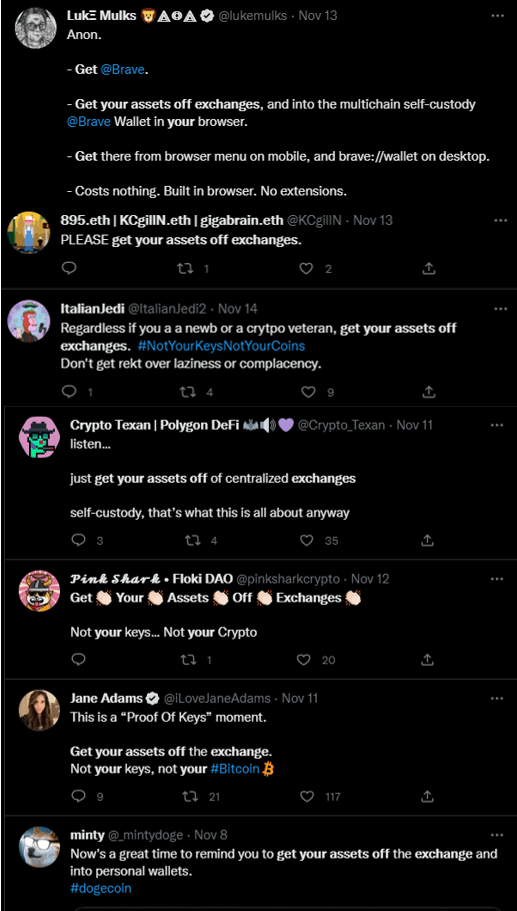 Binance, a rival firm known for its run-ins with US regulators, jumped ahead of the curve.An article byCoinDeskunveiled that the large holdings of FTX's FTT on Alameda's balance sheet 'blurred the lines' between FTX and Alameda,sparking rumorsthat FTX might be insolvent. Binance promptly and publicly announced that it wouldliquidate its entire FTT position ($529M).Binance had previouslysold its equity investmentin FTX in exchange for a mix of FTT and stablecoins.