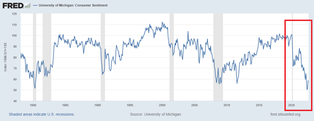 Disney share price will likely remain under pressure over the coming year, even though the share price lost more than a third of its value so far in 2022. The level of profitability that could be achieved by its DTC segment is still highly uncertain and there are early signs that shareholders might need to adjust their expectations of future margins. Deteriorating consumer sentiment makes the matters even worse as the recovery of the theme parks and resorts is now under scrutiny. Having said all that, however, the massive drop in DIS share price over the past year has taken some risk off the table and the bear case is now far less attractive than it was back in 2019.