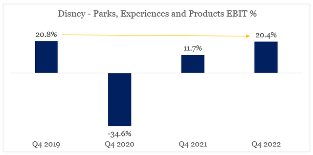 At the time, it was extremely hard to envision a negative scenario going forward as Disney was capitalizing on its Direct-to-Consumer strategy and recent acquisitions. Unfortunately, however, it was at that time when Disney share price was not pricing in future risks and profitability has already peaked.