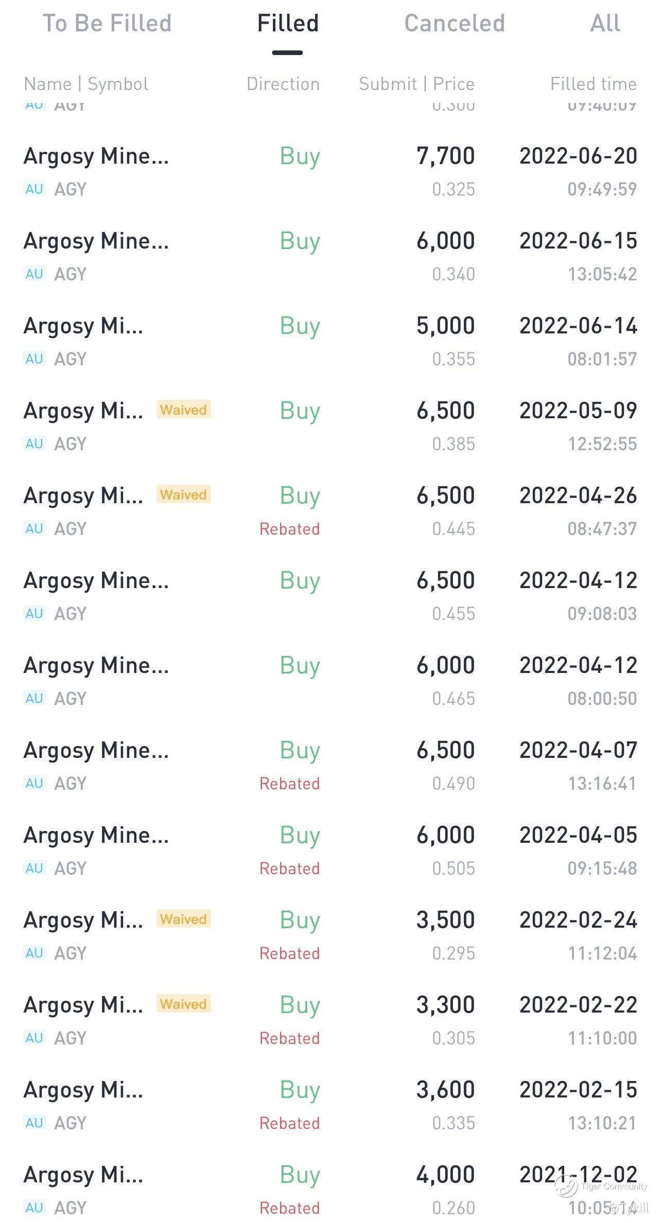Glad that I have been accumulating bit by bit sincestarted using Tiger in Dec 2021 (screenshot can't show all transactions).