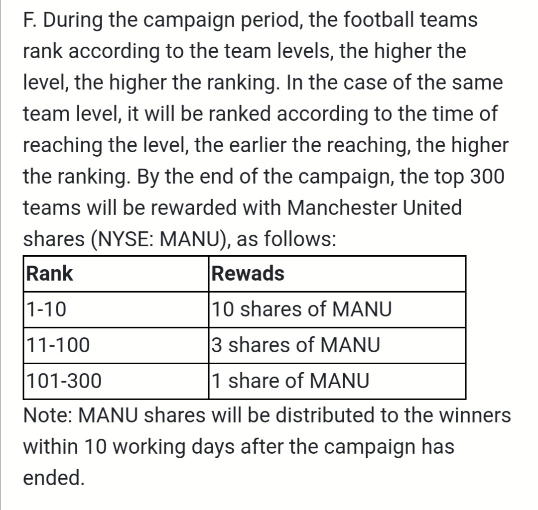 Because $Manchester United PLC(MANU)$ is trading at around US$20 at the time of writing, so 10 shares are worth US$200 which is slightly better than 20,000 points for US$200 voucher.