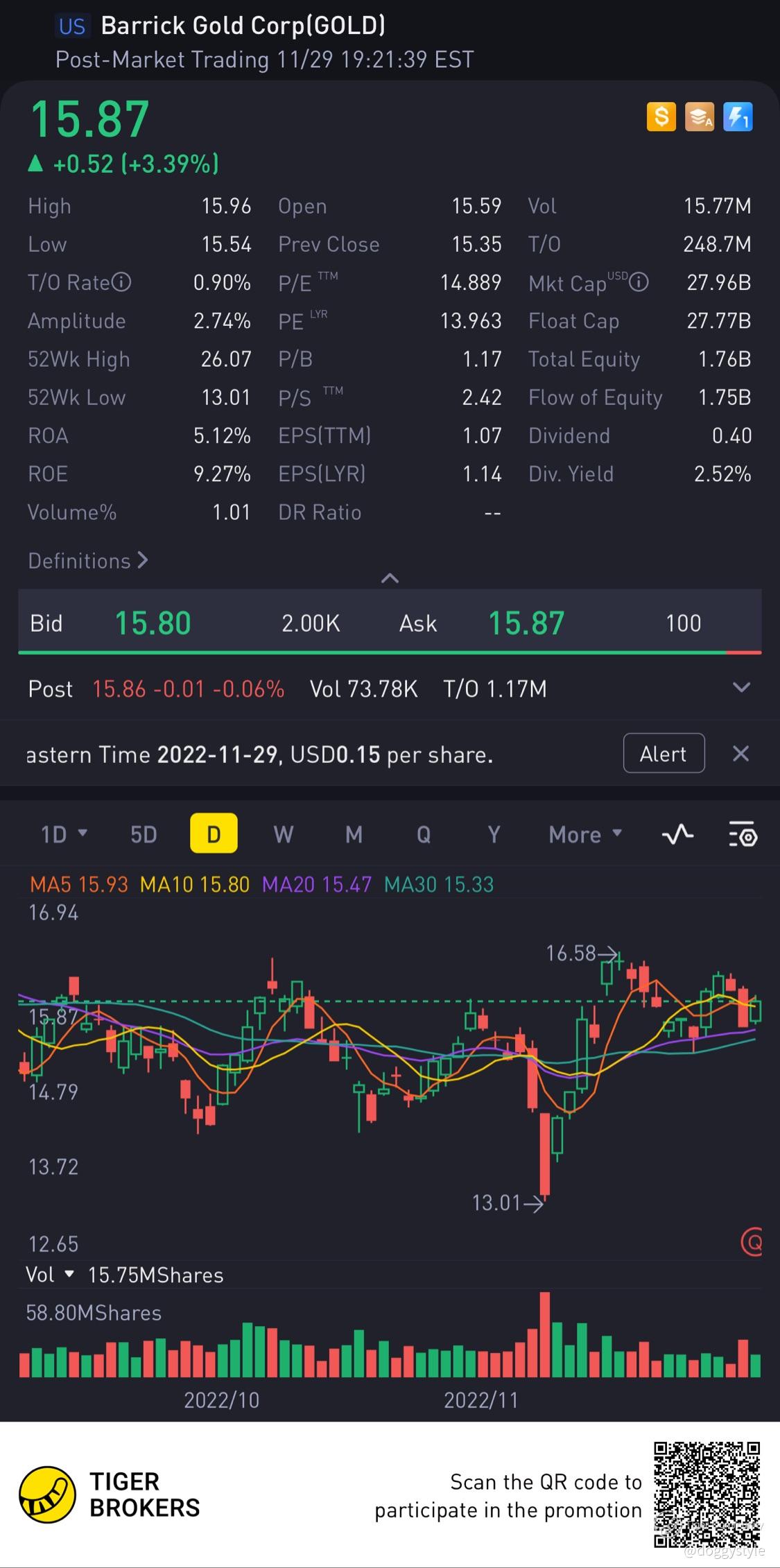 $Barrick Gold Corp(GOLD)$  Gold all the way..