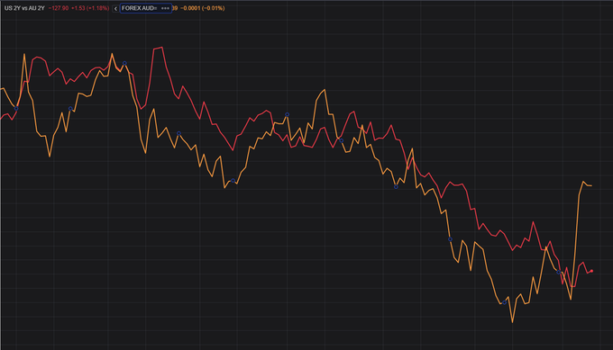 $($aud)$ has diverged from the 2-year yield spread. Let's call it "China hopes". What happens next?