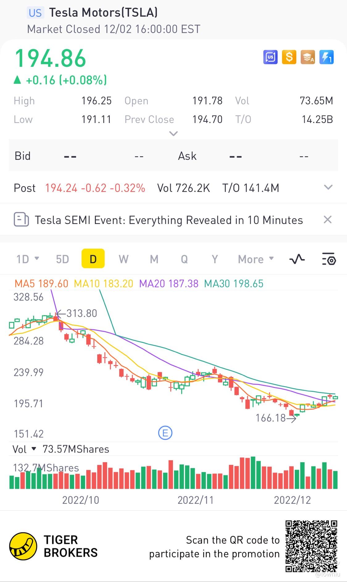 $Tesla Motors(TSLA)$ Rise