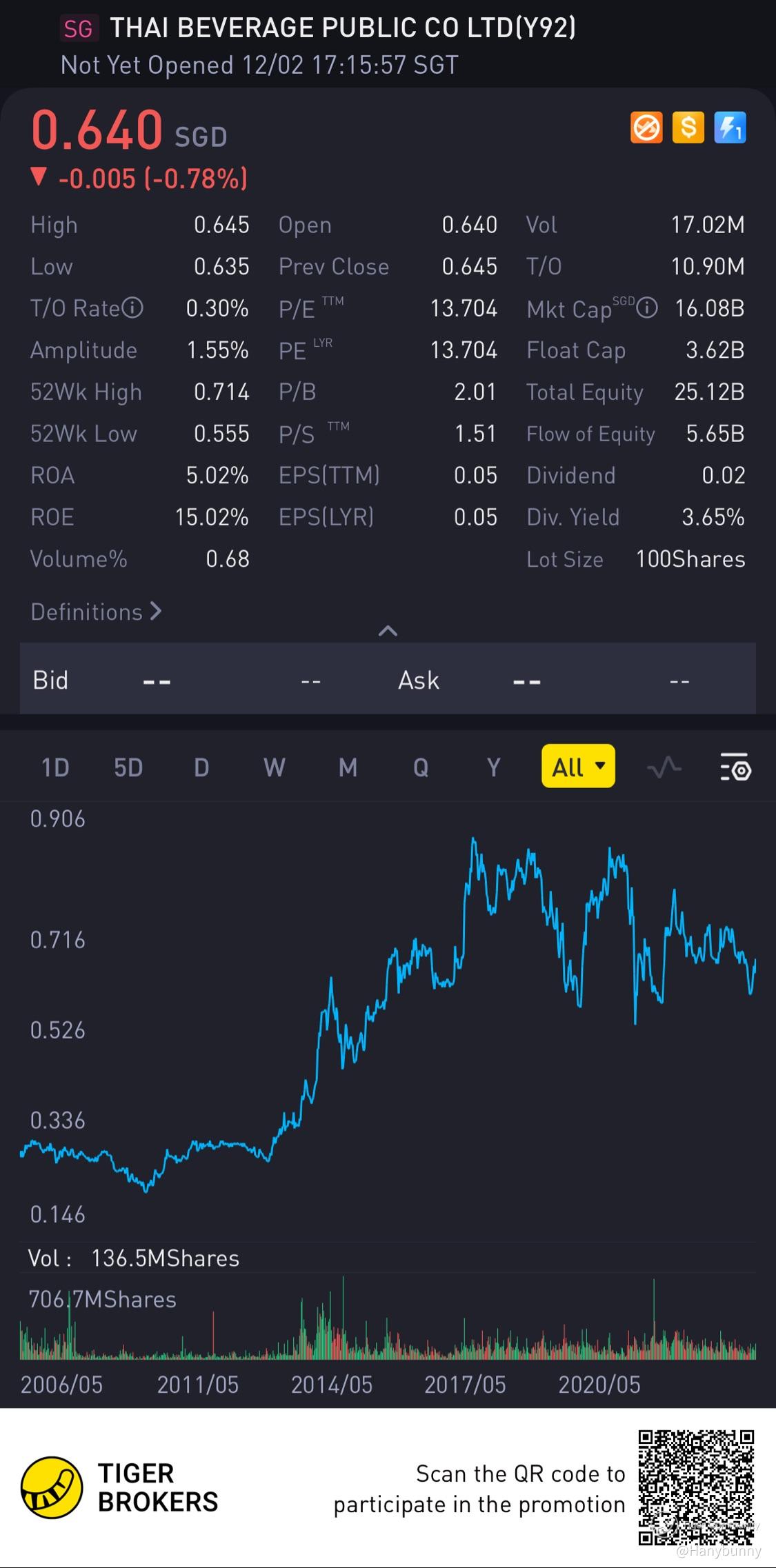 $THAI BEVERAGE PUBLIC CO LTD(Y92.SI)$ Haha