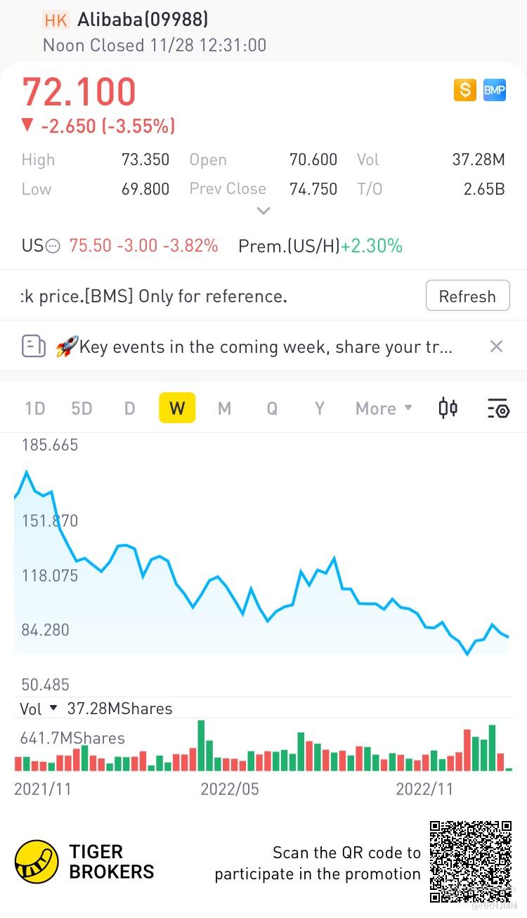 As part of its Nov. 17 earnings report, which showed adjusted profit up 5% year over year to $1.82 a share but revenue down 6% to $29.1 billion, BABA said it's increasing its share buyback program by $15 billion, on top of an existing $25 billion program. As of Nov. 16, the company said it already repurchased $18 billion worth of stock under its existing program.