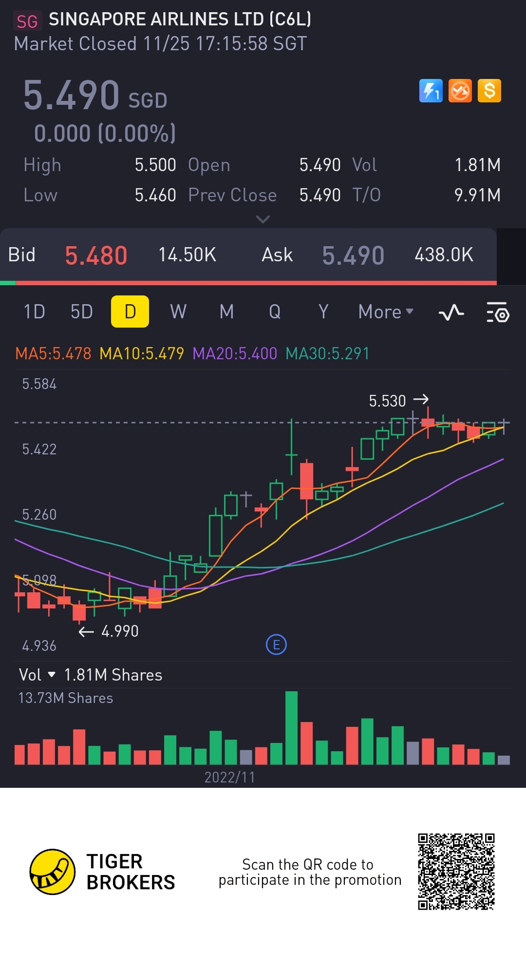 $SINGAPORE AIRLINES LTD(C6L.SI)$ [Cool]