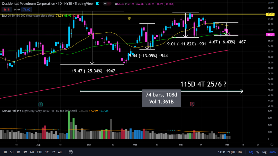$OXY VCP - Volatility Contraction Pattern is not a separate pattern from a cup with handle, power play, inverse H&S, double bottom, cup completion cheat (3-C), etc... it's a characteristic of the patterns. Yes, it does map out a "pattern", but it can occur within any of the above.I developed VCP because I saw so many traders misinterpreting technical patterns and I wanted to come up with a way to better explain what to look for and how to properly identify constructive price action. Viola! Volatility contraction analysis via VCP is born.- Mark Minervini $Occidental(OXY)$