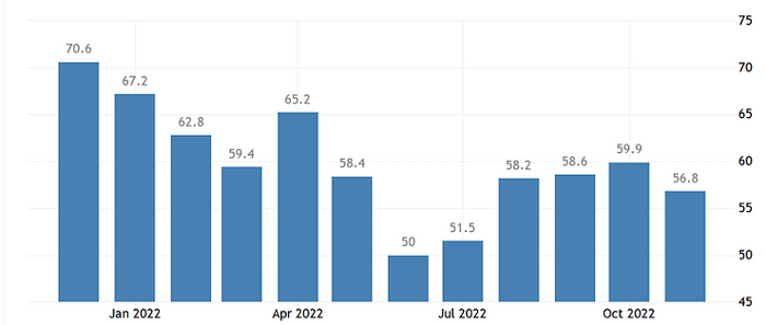 Overall, consumer confidence has sharply rebounded from the record low of 50 set in June when consumers were hit with all-time high inflation and economic slowdown. Low unemployment and lower gas prices should ensure that the index keeps inching up over the next year, proving to be a boost to the markets.