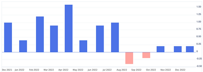 On an annual basis, PPI is estimated to have decelerated from 8% in October to 7.2%, while core producer prices, which exclude food & energy, are expected to have decelerated from 6.7% in October to 5.9, marking the slowest annual increase since July 2021. PPI is a leading indicator of inflation, and the current forecasts could indicate that inflation is slowing down to the 2.0% annual target, which is healthy for the economy.