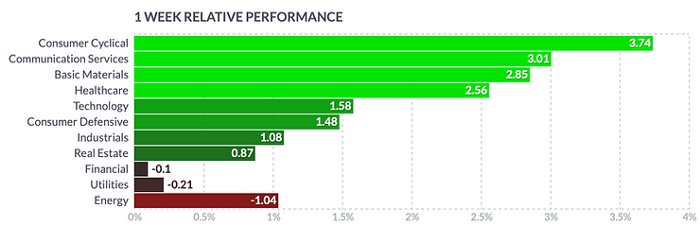 The three best-performing industries for the past week were Consumer Cyclical, Communication Services, and Basic Materials, which delivered returns of 3.74%, 3.01%, and 2.85%, respectively.