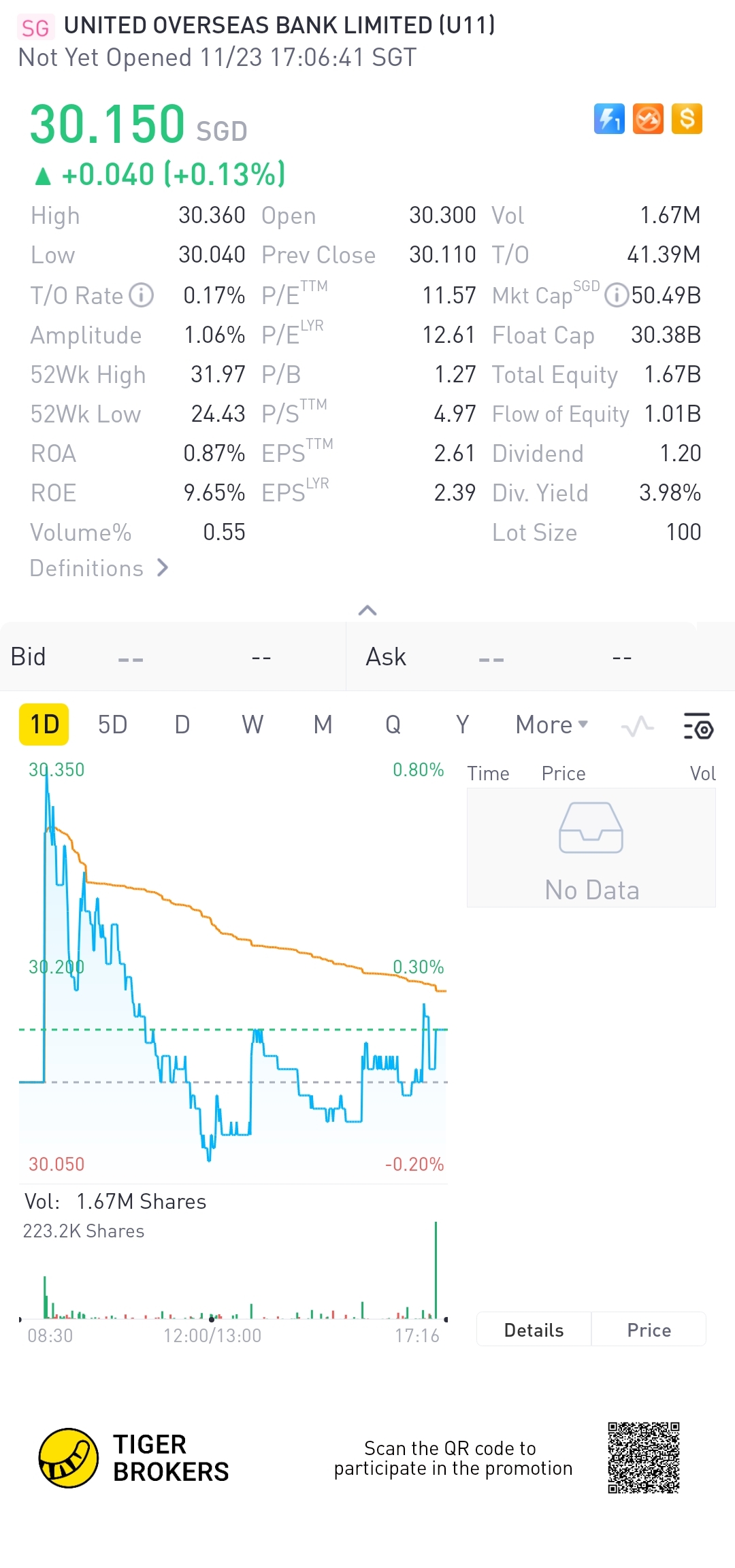 $UNITED OVERSEAS BANK LIMITED(U11.SI)$ Good to see that it is standing above $30 and expects to raise it dividend.