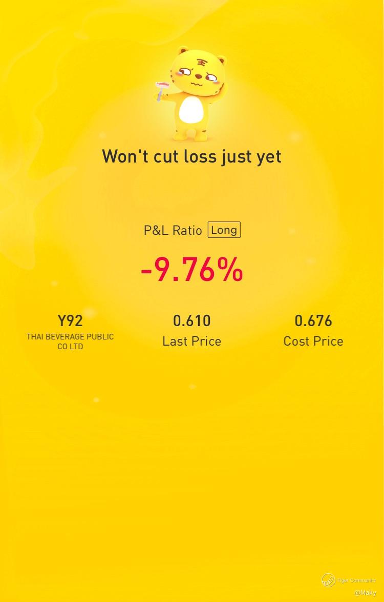 $THAI BEVERAGE PUBLIC CO LTD(Y92.SI)$ Still bullish on this stock so will just hold and wait