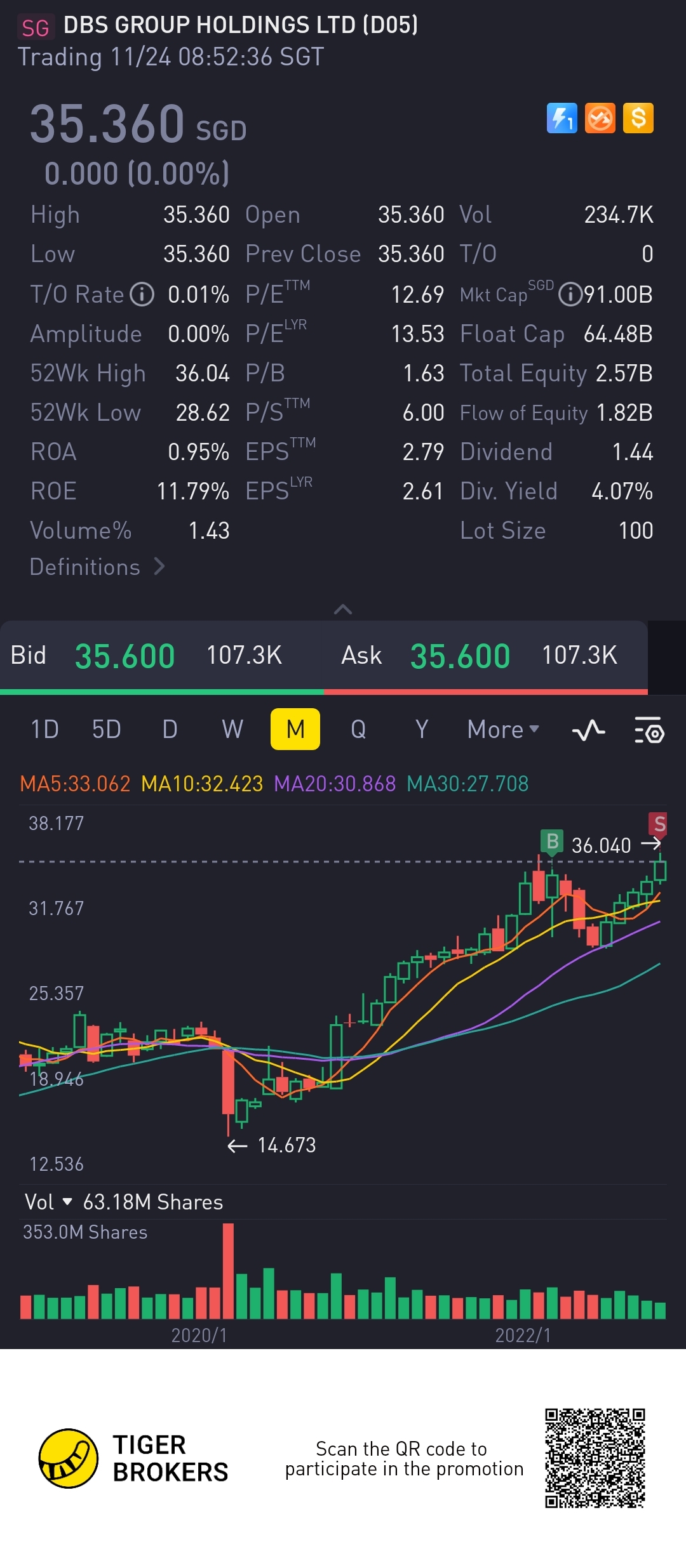 $DBS GROUP HOLDINGS LTD(D05.SI)$ $UNITED OVERSEAS BANK LIMITED(U11.SI)$ $OVERSEA-CHINESE BANKING CORP(O39.SI)$ Bullish on SG banks. Dividends coming in today for DBS, UOB doing well maintaining above $30 and OCBC above 12. [Cool]