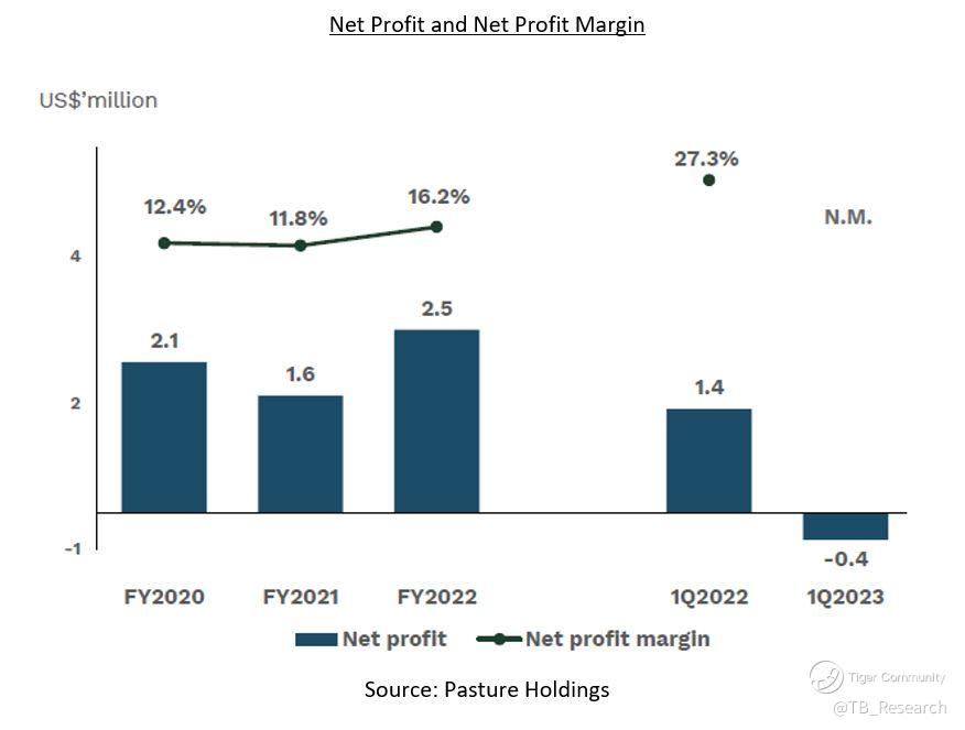 Net profit increased 56.3% in FY2022 primarily due to the higher selling price and volume for our masks (N95 respirators) and medical supplies. However, it registered a net loss in 1Q2023 due to lower revenue and increased operating expenses from the development of the furlife mobile application and higher professional fees in relation to the IPO listing exercise.