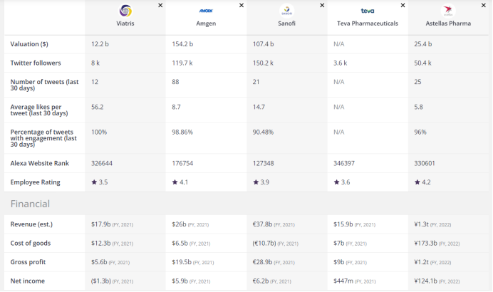 2021: Viatris was ranked 5th by Fortune on its annual "Change the World" list.