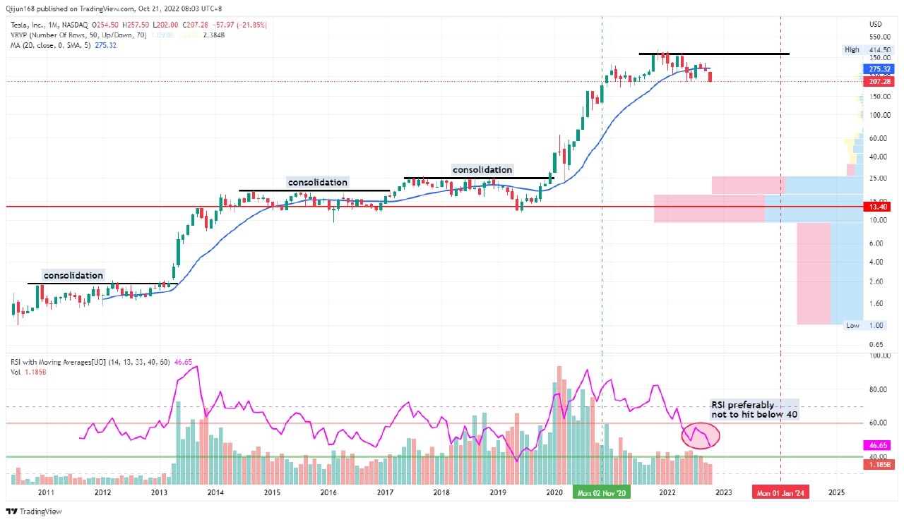 But if monthly RSI hit below 40, Tesla might go into a prolong downtrend
