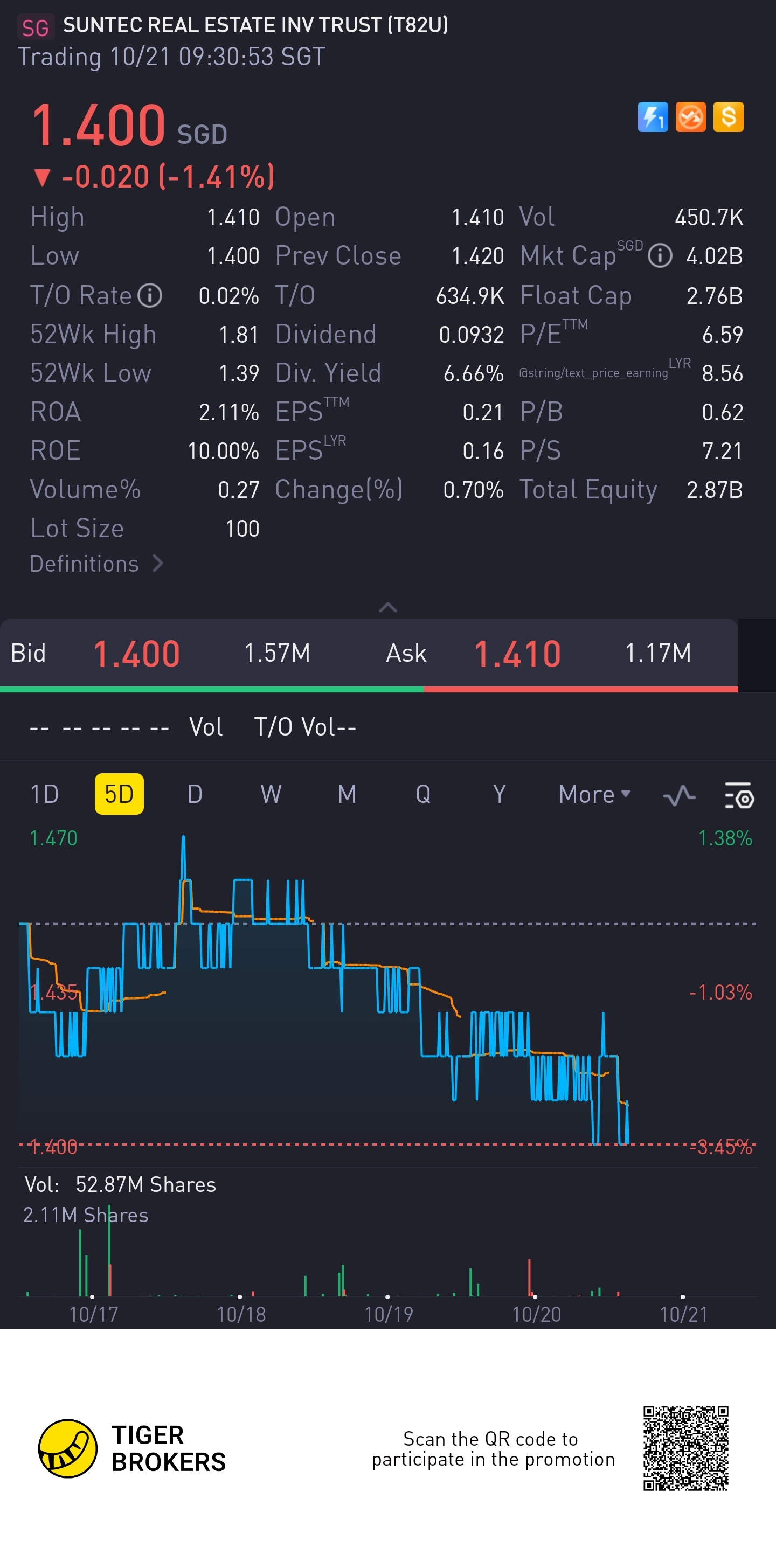 $SUNTEC REAL ESTATE INV TRUST(T82U.SI)$suntec rock solid cause events back oready and office crowds are all back. Huat ah to the max suntec. Fountain in full effect. Got F1 car racing and DOTA 2 The International 11 bringing all the tourism to here to spend gao gao dont me me i am just talking to myself.no finance advice and macro wconomic environment weighing down on stock price. Just know stock price does not equal to business fundamentals and the market is based on liquidity not bogus valuations peeps