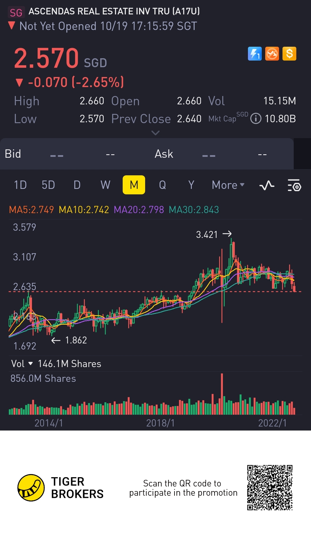 $ASCENDAS REAL ESTATE INV TRUST(A17U.SI)$ Holding and buying the dip