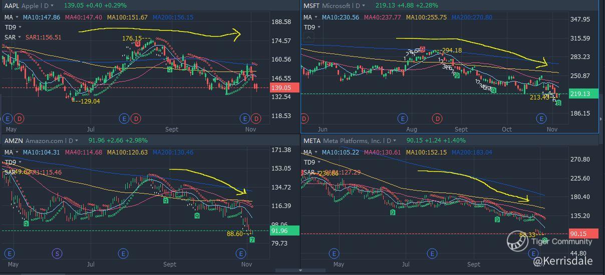 From their reportings, Meta performed the worst with a drop of more than 30% level before the earnings report. In comparision, Apple's numbers were met with a positive stock reaction in the beginning, though in downside thereafter. Looking at the charts, Apple price is ranging and does not expose to adverse swings.