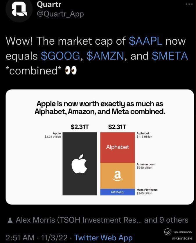 Apple now valued at more than Amazon, Alphabet and Meta — combined.