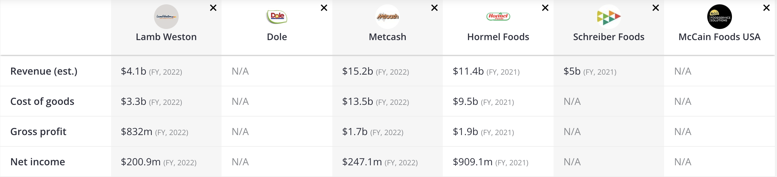 The company offers frozen potatoes, commercial ingredients, and appetizers under the Lamb Weston brand, as well as under various customer labels.