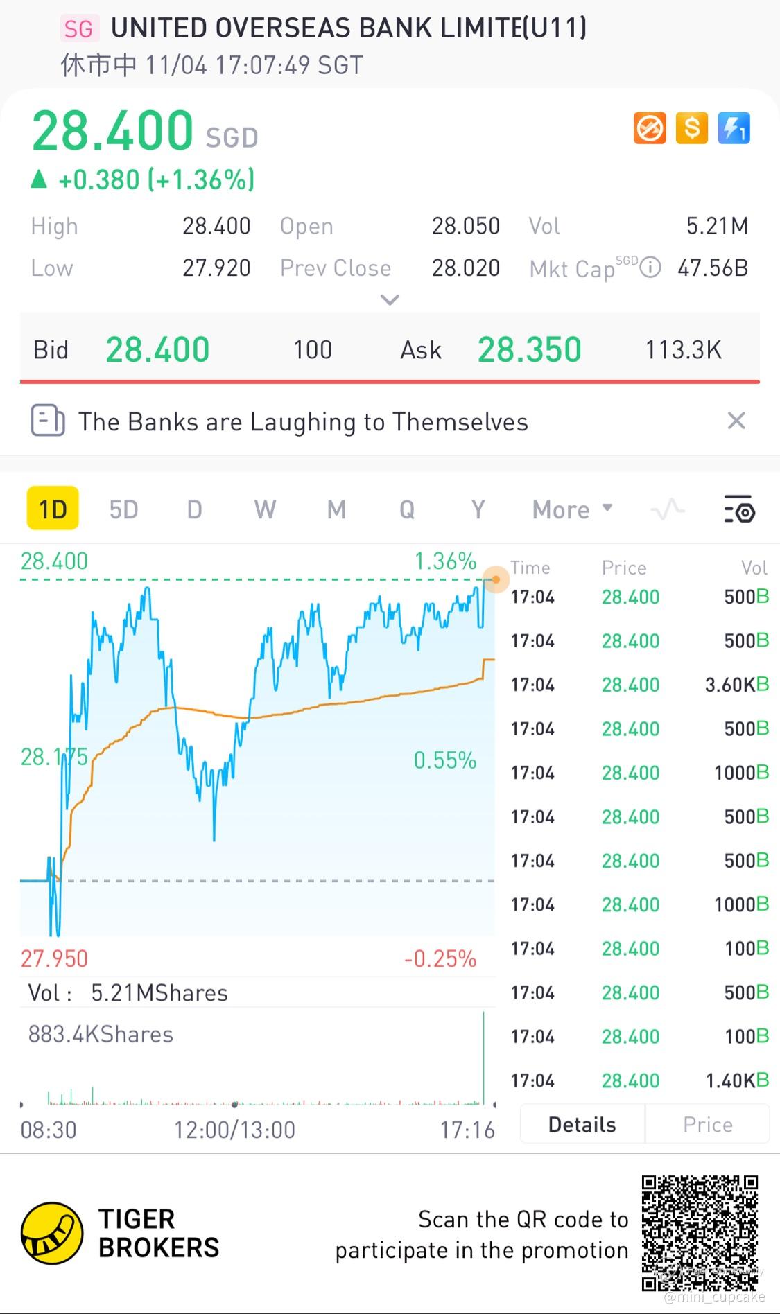 $UNITED OVERSEAS BANK LIMITED(U11.SI)$UOB's net interest margin may widen further on the Fed's expected rate increases, RHB Research analysts say in a research report. After UOB's NIM grew 28 bps on quarter to 1.95% in 3Q, management expects NIM to be wider than 2.0% in 4Q and to widen by a further 5-10 bps should the Fed funds rate increase to 4%, the analysts note. Management also expects the Singapore-listed bank's asset quality to remain resilient, thanks to factors including healthy employment markets.