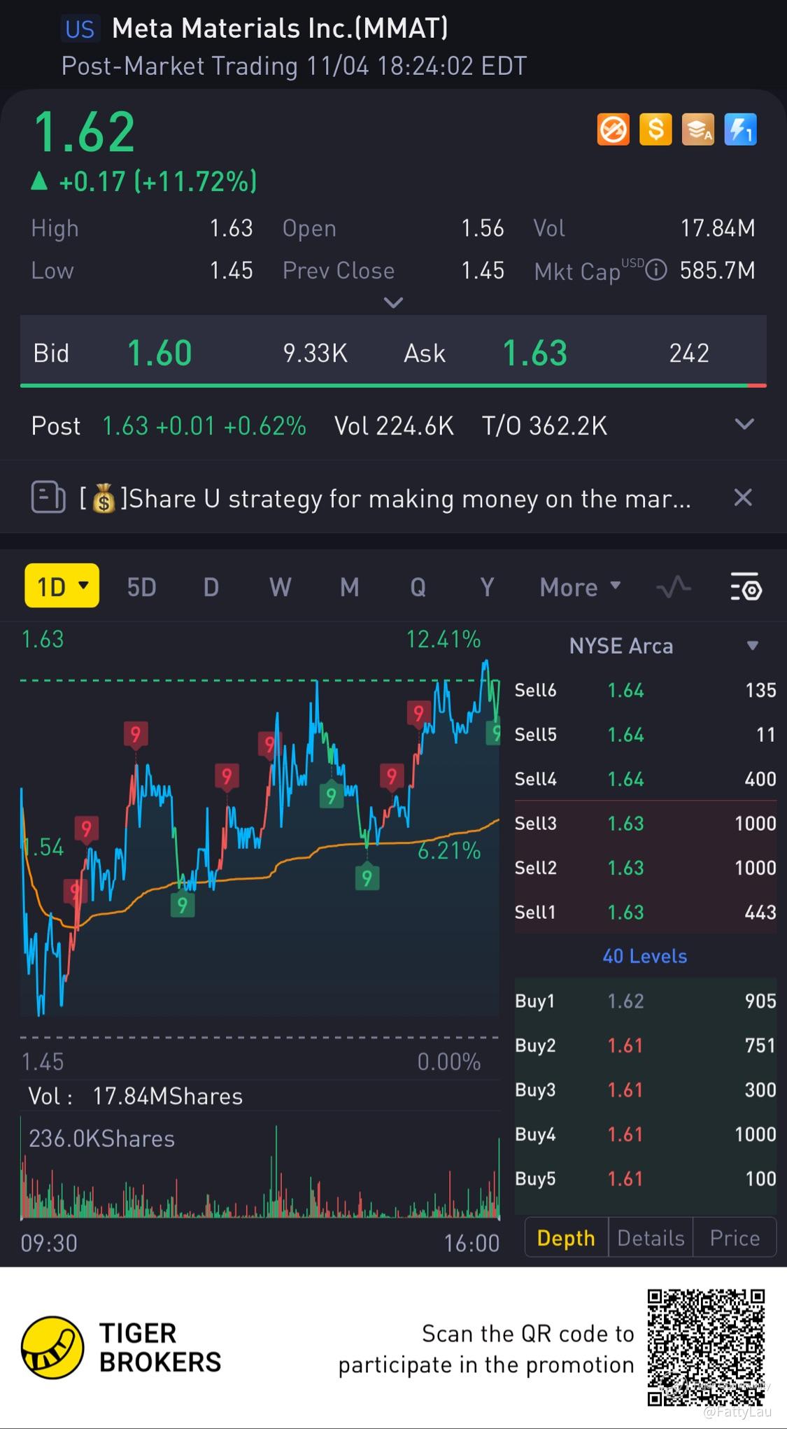 $Meta Materials Inc.(MMAT)$It's starting to run up. Sit tight guys. Those holding TRCH earlier on and gotten MMTLP, pls don't be a weakhand. The price of the dividend asset may be more than the run up price, referencing to oil price.