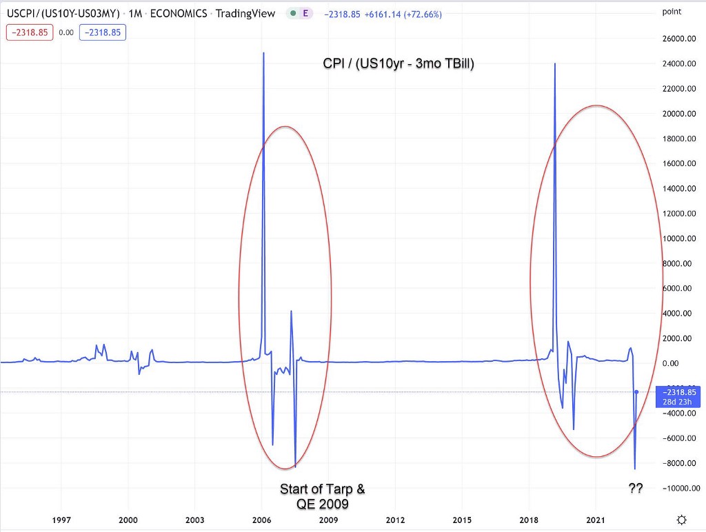So the Fed’s favorite curve spread is 10yr Treasuries minus 3mo TBills. They finally inverted along with some other curves. These aren’t short-term indicators but they are setting a stage. Inflation is still on the move worldwide. I suspect we will all be living with inflation for years to come. The Fed may not be able to tame it but they can raise their acceptable level from 2% to say 3 or 4%. I don’t see a pivot in the sense of dropping rates but they could well pause early next year. The next two rate hikes are already baked in. Any dovish language will be bullish. In lieu of any wars or financial implosions, the market could add some upside into year end. Twist will put an artificial floor under long rates. TMF is on my radar. Could a pause be close at hand?