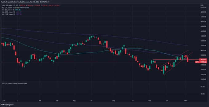Your morning market bite. Fed hikes by 75, suggests rates could go higher and be there for longer.