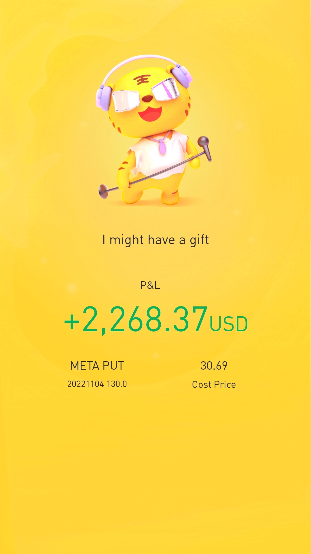 $META 20221104 130.0 PUT$ $META 20221104 130.0 PUT$ although I believe meta has no chance to turn it's poor performance, but for big gain of this put, I choose to close it.
