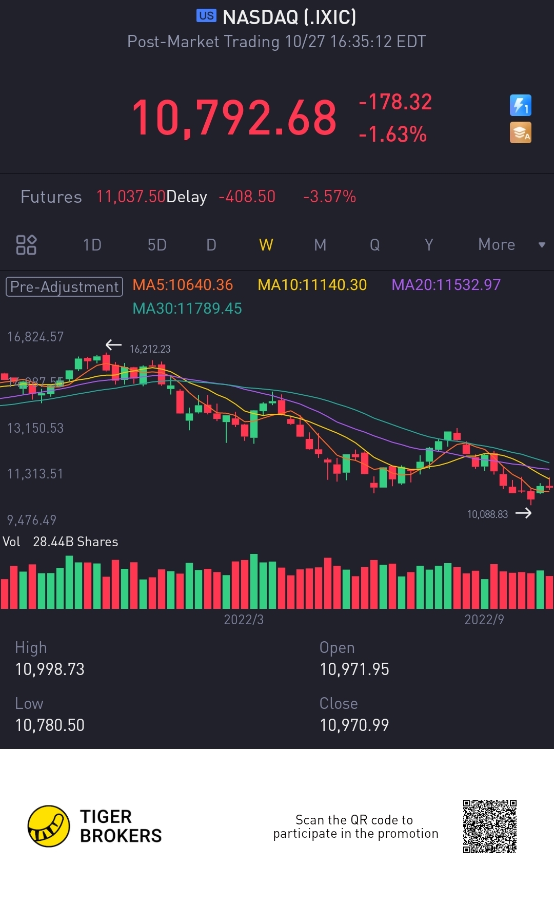 $NASDAQ(.IXIC)$the market ease the data center need improving news, and turning down as the bad earning reports from big names. $meta$ and $amzn$ finally realeased huge down momentum, and they proved what we concerned.