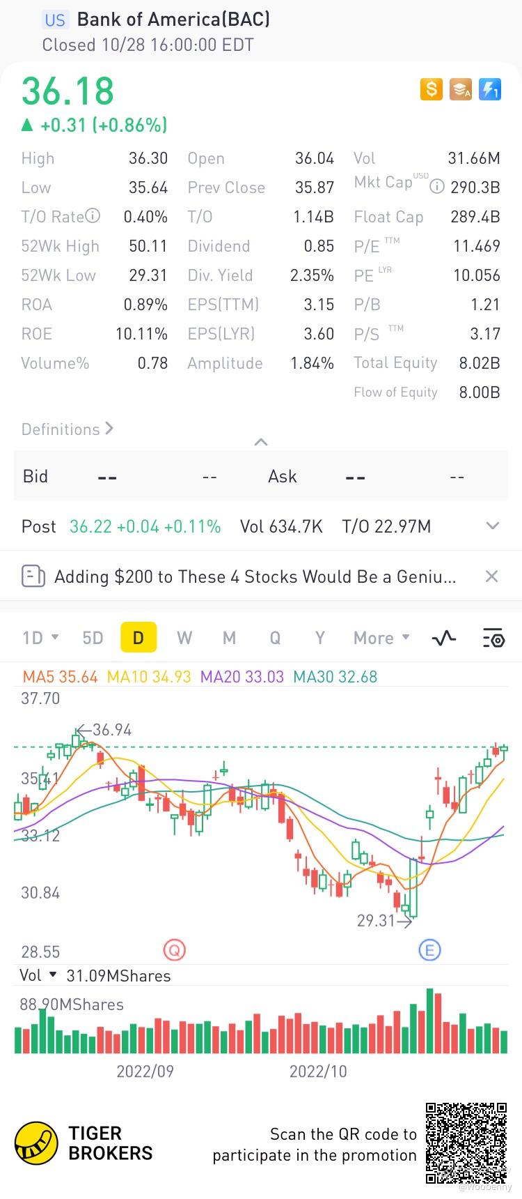 $Bank of America(BAC)$What a run from $29. Wpuld be bullish until at least mid Nov, where we potentially see another rpund of correction đ