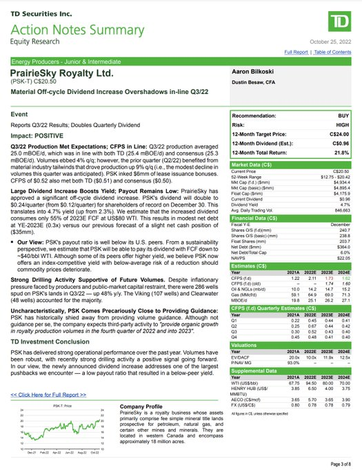 2.TD on PSK$Prairiesky Royalty Ltd.(PREKF)$ 3.TD on RRC$Range Resources(RRC)$