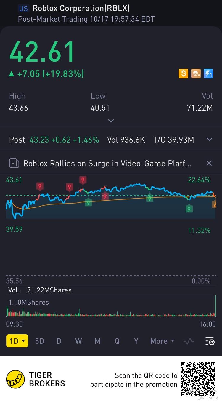 $Roblox Corporation(RBLX)$Top percentages rising stock