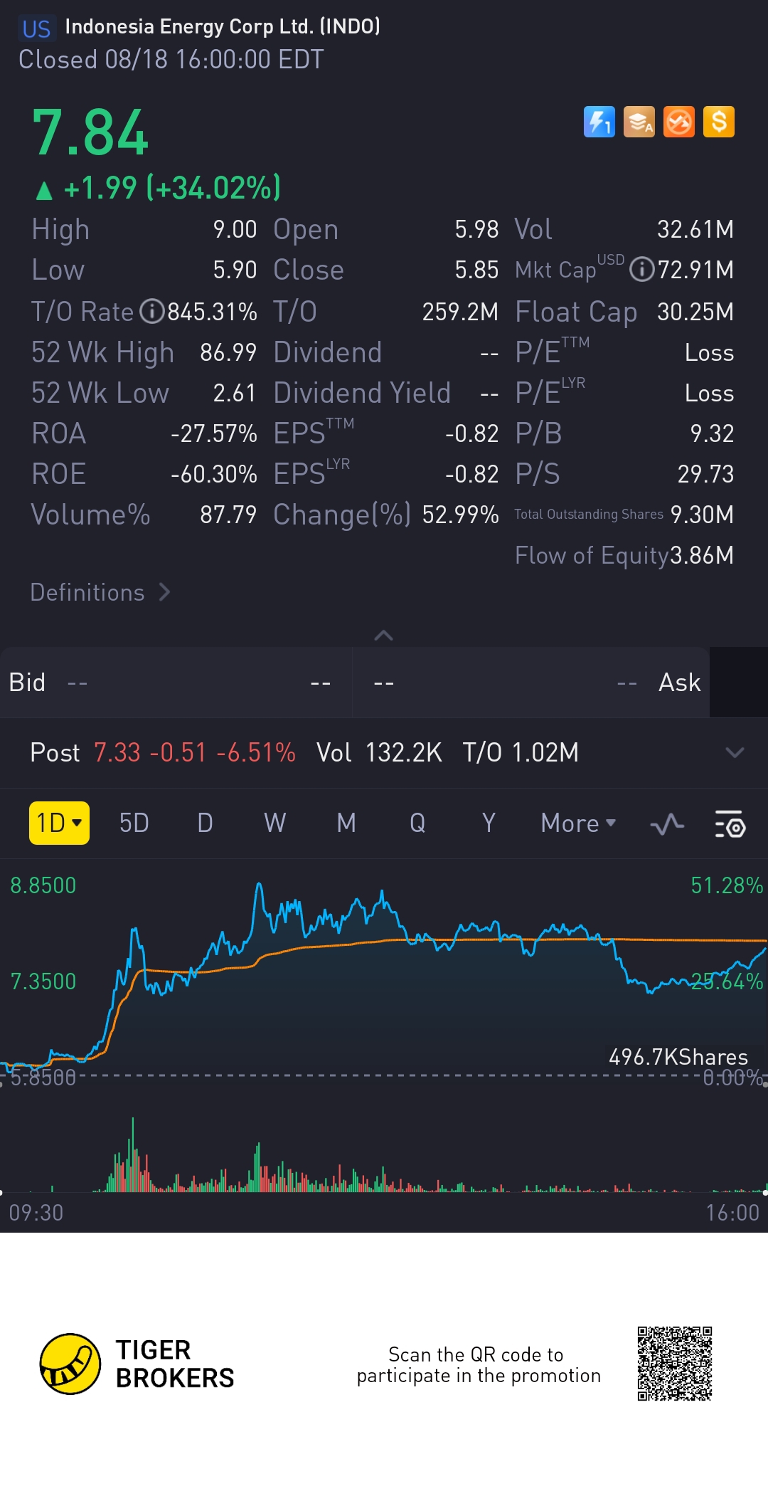$Indonesia Energy Corp Ltd.(INDO)$Indonesia Energy Corp. Ltd. shares jumped 43% in premarket trading Tuesday after the company said it discovered a potential natural-gas bearing reservoir while drilling.