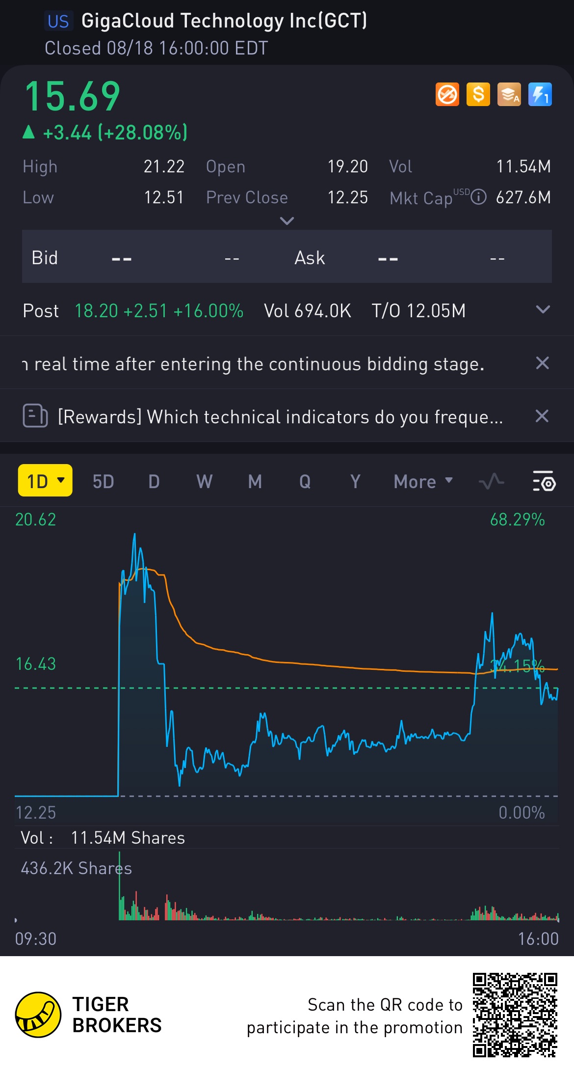 GigaCloud Technology $GigaCloud Technology Inc(GCT)$traded for the first time opening at $19.20 after pricing 2.94 million Class A ordinary shares at IPO price of $12.25. The stock reached a high of $21.22, before sliding to alow of $12.51. The stock closed at $15.69 but has since gained about 16% in after hours, at $18.20.