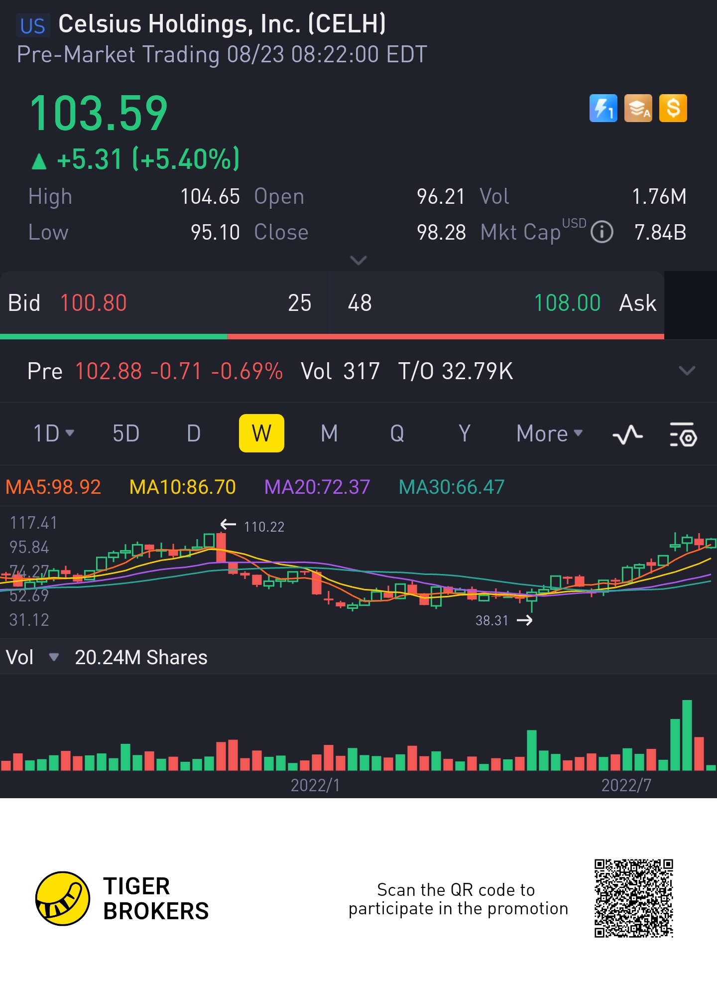 $Celsius Holdings, Inc.(CELH)$while the market is down for the past few days, Celsius surged by 5% yesterday showing some relative strength