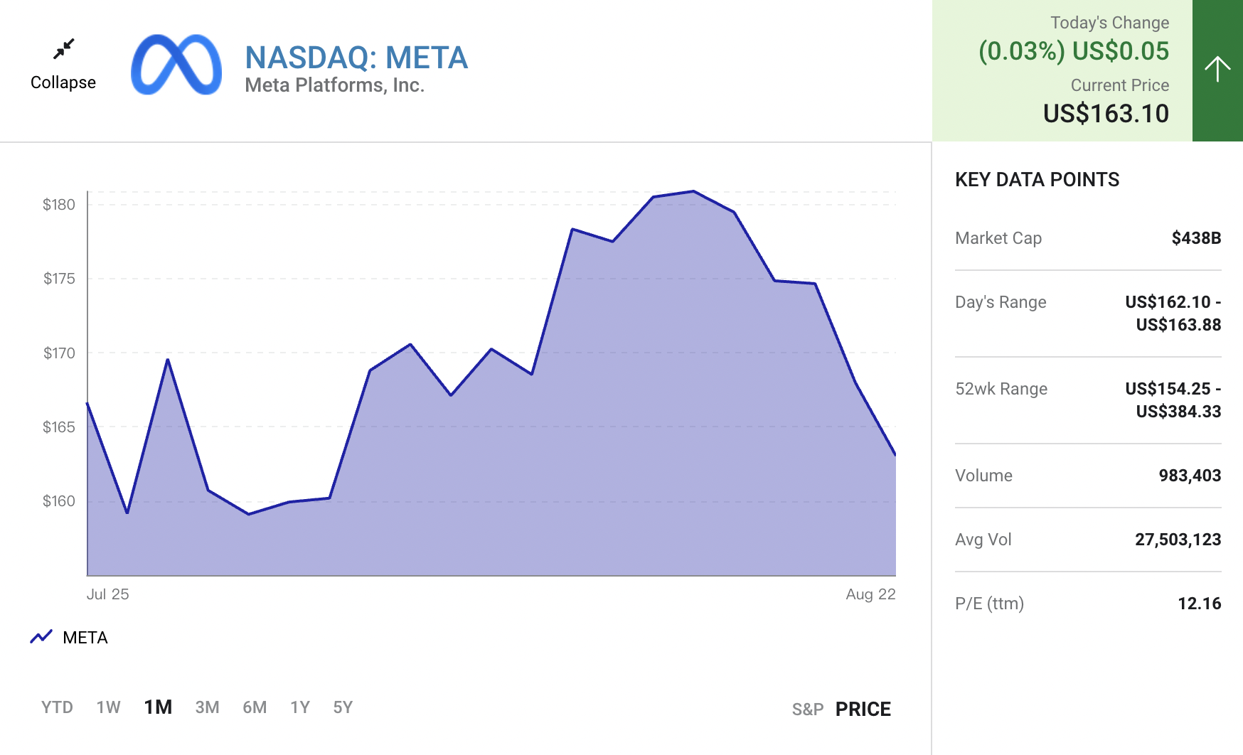 That wasn't the only development pushing down Meta's price on Friday.The Wall Street Journalreported before market open thatRoblox(RBLX0.51%)has hired Steve Park away from thesocial mediagiant. Park was Meta's director of public policy for Korea and Japan, two important Asian markets, and had worked for the company for nearly nine years. An unnamed Roblox spokeswoman confirmed the hire, saying that Park will join his new company as Asia-Pacific head of public policy.