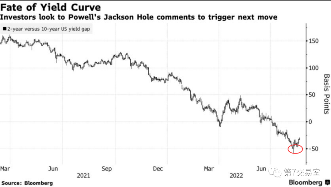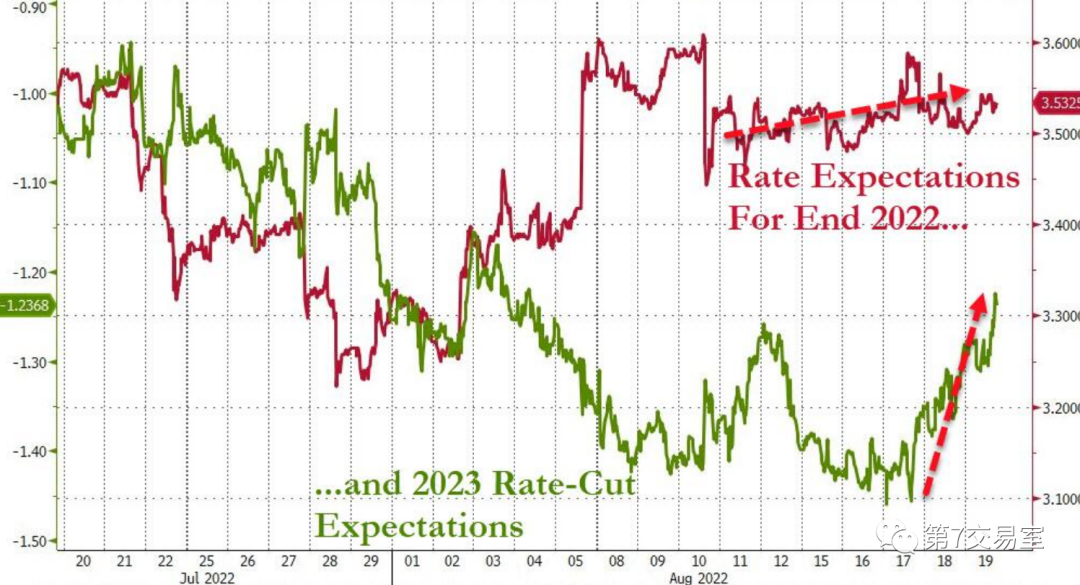 It is very likely that at this Jackson Hole annual meeting, Powell will begin to dispel the market expectation of cutting interest rates in 2023, so in the Eurodollar interest rate futures market, the possibility of cutting interest rates next year, which has already started pricing, is rapidly decreasing: