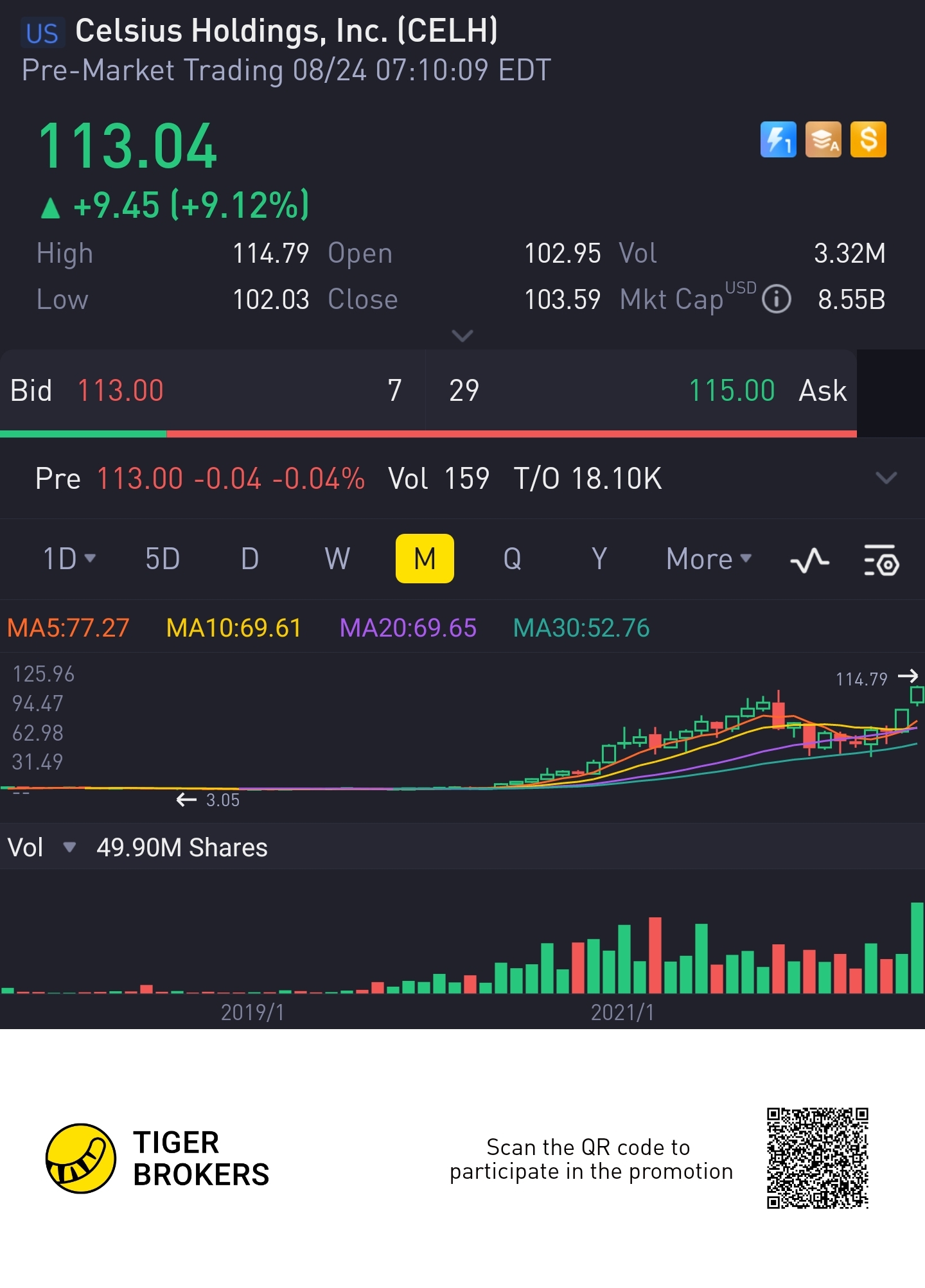 $Celsius Holdings, Inc.(CELH)$very strong despite the flattish index performance yesterday. Celsius just made a new all time high. Will this continue for the rest of the week? Go go go