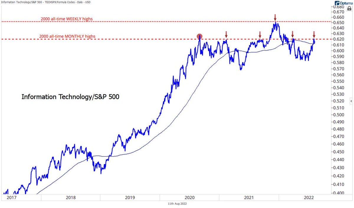 Tech sector relative strength is stuck in the mud, and unlikely to be a driver of strength for the broad market unless it can breakout against stiff resistance.