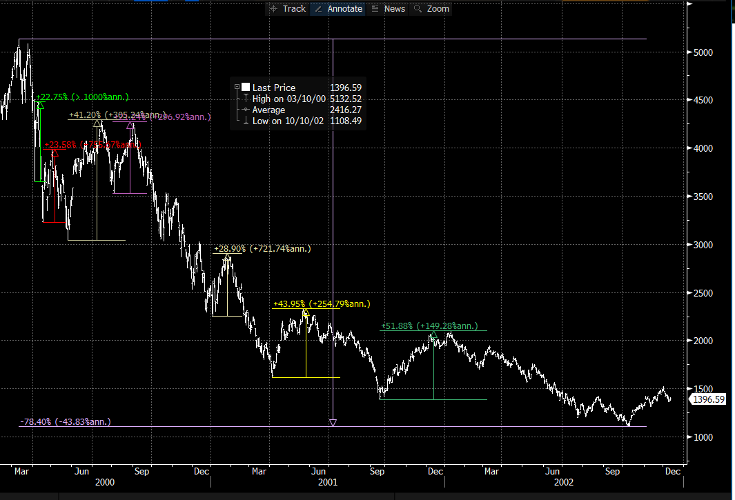 AsBurrypointed out, the Nasdaq rallied 20%+ seven (7) times during the 2000-2002 period (a period which most would describe as an actual bear market)