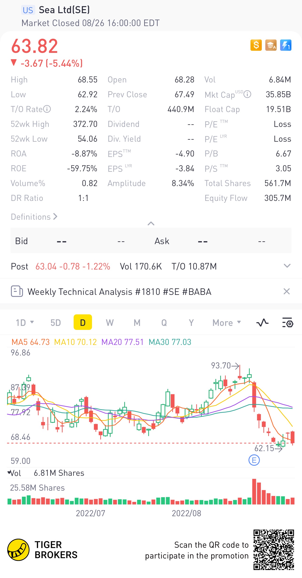 $Sea Ltd(SE)$It's in for a roller coaster ride In the short term. Expect more downside than upside. DODD when investing.