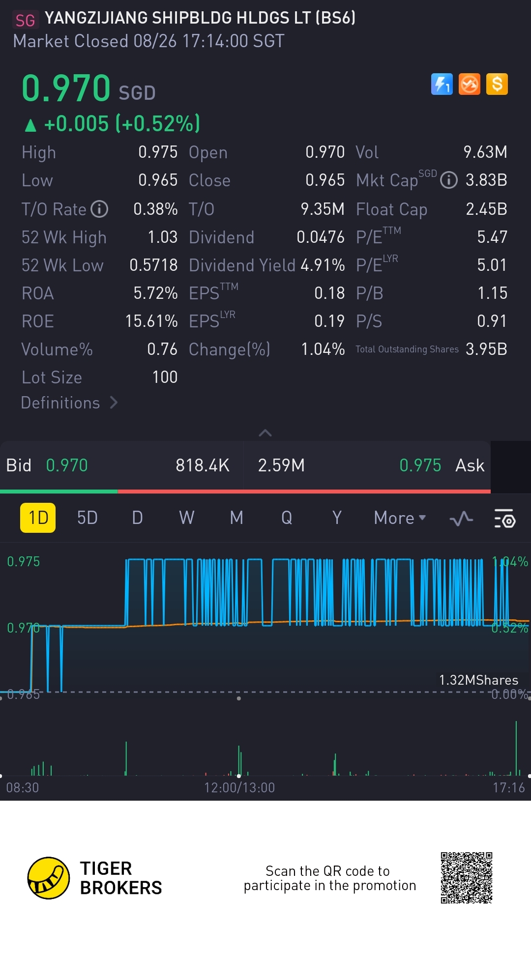 $YANGZIJIANG SHIPBLDG HLDGS LTD(BS6.SI)$