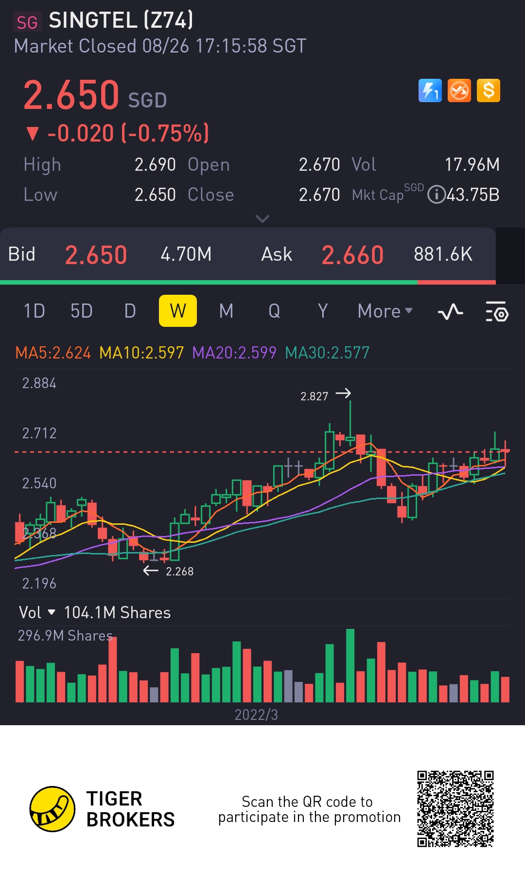 $SINGTEL(Z74.SI)$2.70 target short run