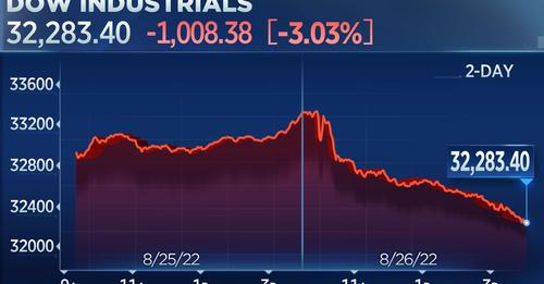 Stocks plummeted Friday after Federal Reserve Chair Jerome Powell said in his Jackson Hole speech the central bank won’t back off in its fight against rapid inflation, spurring investors to weigh the implications of higher interest rates kept in place for a longer time.