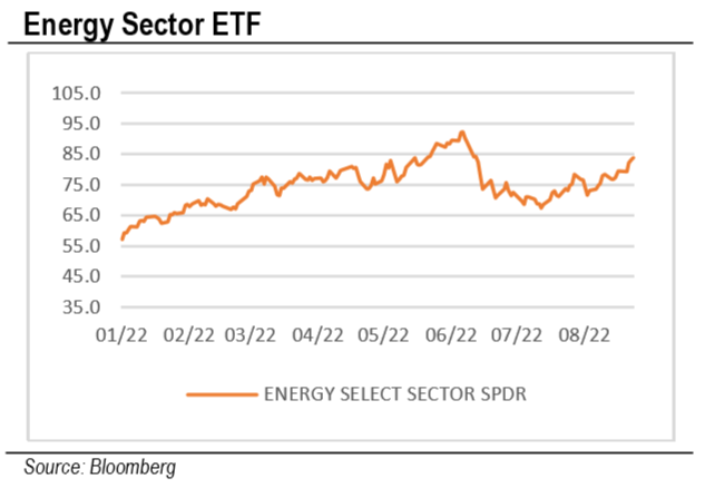 Energy sector saw renewed investor interests as supplies in the energy market is still tight with a dip in inventories, OPEC+ potential production cut and amid continued disruptions out of Russia. Brent rebounded above $100/barrel or roughly around 10% from the trough, despite a potential Iran nuclear deal that could add supplies of 1 million bpd. $Energy Select Sector SPDR Fund(XLE)$ have seen a sharp reversal since July, following investor’s pricing in that an economic growth or a technical recession could result in demand destruction. Warren Buffet also continues to up the ante in the energy sector with its continued interest to accumulate up to 50% of Occidental Petroleum.